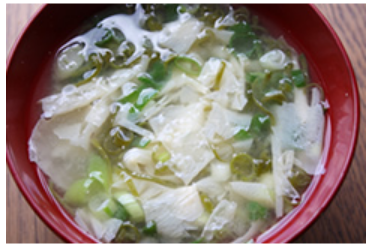 (1)味噌を溶いた後、火を止める直前にお鍋に入れて