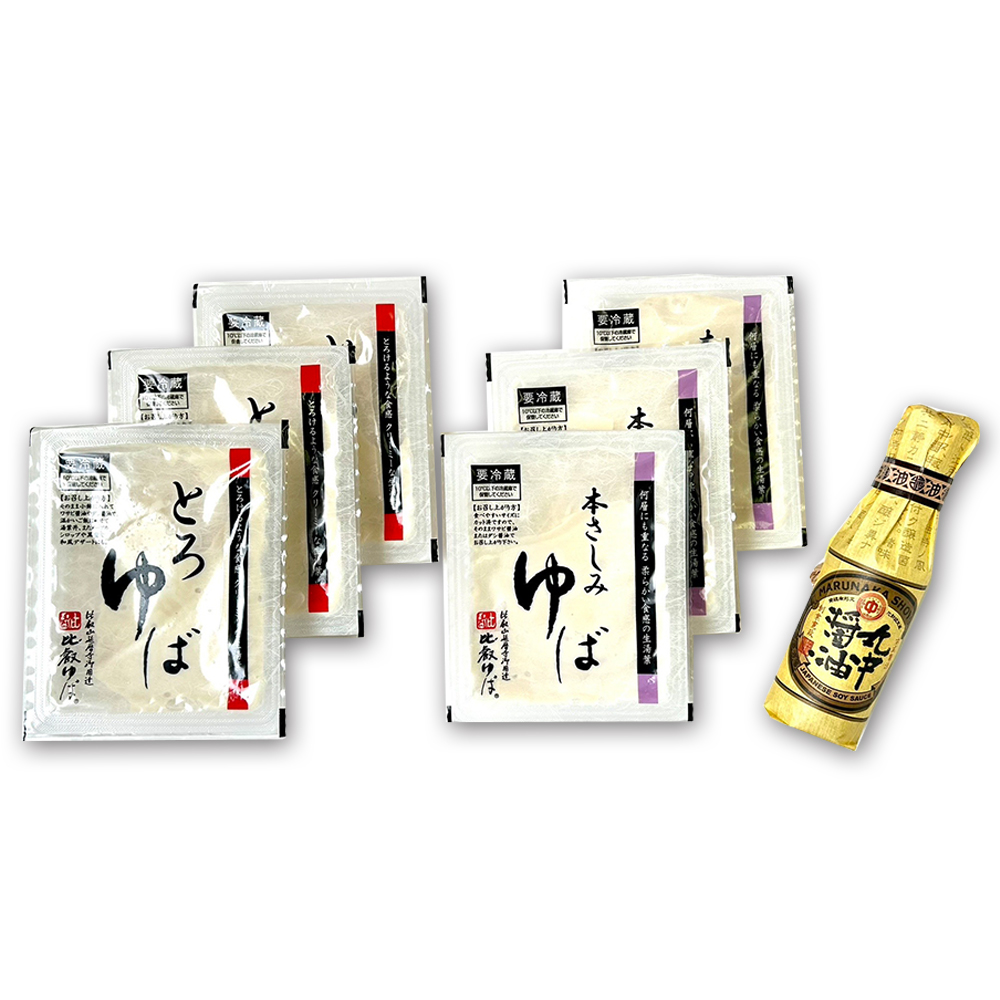大切な方への贈り物に喜ばれる、究極の醤油で食す、おすすめの生ゆばギフトセットです。
