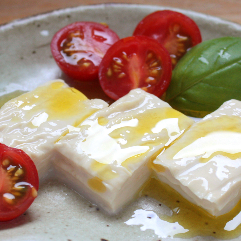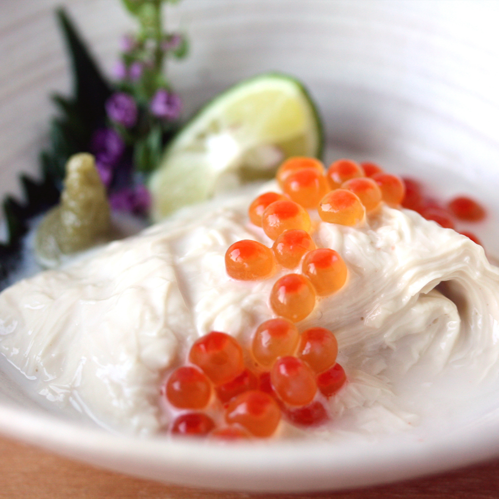 豆乳をたっぷり含んだやわらかい生ゆばを、ミルフィーユのように何層にも重ねました。