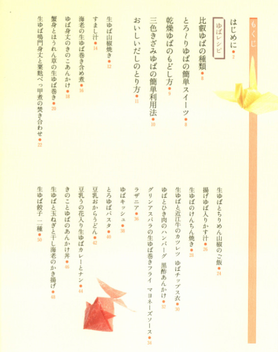 手軽なゆば料理から伝統料理まで、50のゆばレシピを紹介しています。