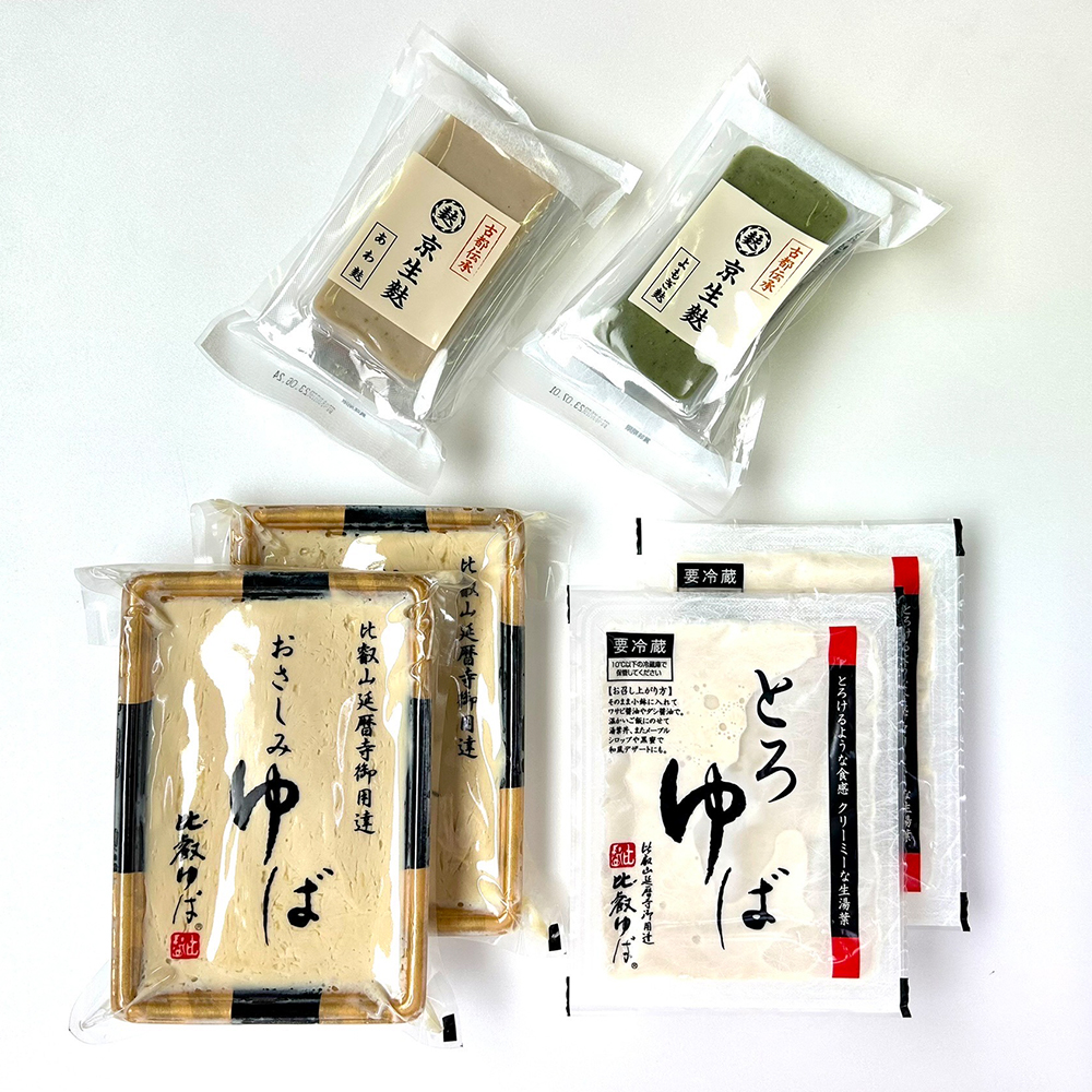 当店人気の生湯葉2種と生麩2種を一緒にお楽しみいただけるセットです。